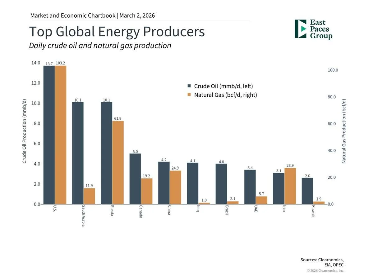 Some context is warranted, however. Current oil prices remain well below the 2022 peak of nearly $128 per barrel, which followed Russia’s invasion of Ukraine. Today’s environment is meaningfully different. Since 2018, the U.S. has been the world’s largest producer of oil and natural gas, with domestic output exceeding that of major producers such as Saudi Arabia and Russia. While the U.S. remains connected to global energy markets, this level of production provides a meaningful buffer against supply disruptions.
